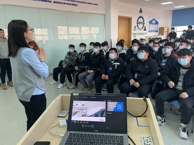 奥托立夫(江苏)汽车安全零部件有限公司负责人热情接待了前去参观的师生,并引领大家参观企业,为学生详细地介绍了公司的发展历史、企业文化、组织结构以及企业的产品,展示了企业面貌。