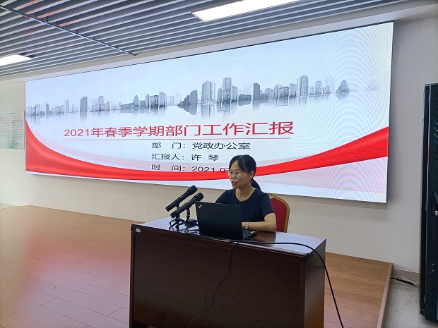 为充分发挥各处室、系部工作人员的积极性和创造性,进一步提高学校的管理水平和工作效率,7月10日上午,在体育馆二楼旅宾实训室举办了2021年部门工作述职测评会暨领航计划创建专题培训。党总支委员、校领导班子成员、全体行政人员、教职工代表参会。会议由校党总支书记林静同志主持。