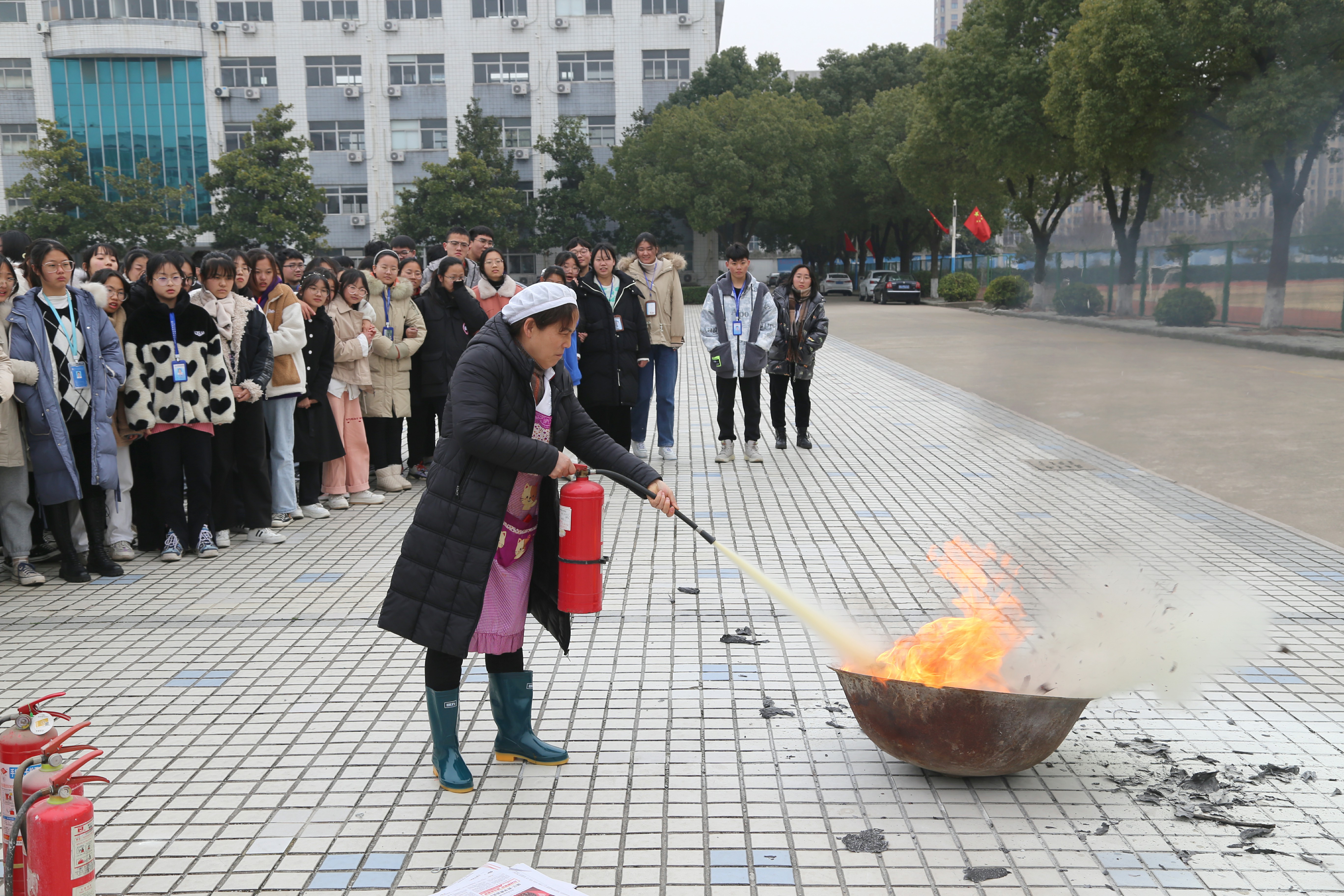 随着新学期来临,为全面提升我校学生安全教育工作水平,使学生积极迎接新学期,提高安全意识和自护自救技能。我校于2月22日下午开展了2022年春学期“开学第一课”消防演练、安全教育活动。消防安全实战演练,进行了灭火器的实际使用演练,现场演示、讲解了灭火器的使用方法,师生代表、宿舍管理员、保安、食堂工作人员分别使用灭火器进行了灭火操作演练,掌握了灭火器材的使用和灭火操作的基本方法。