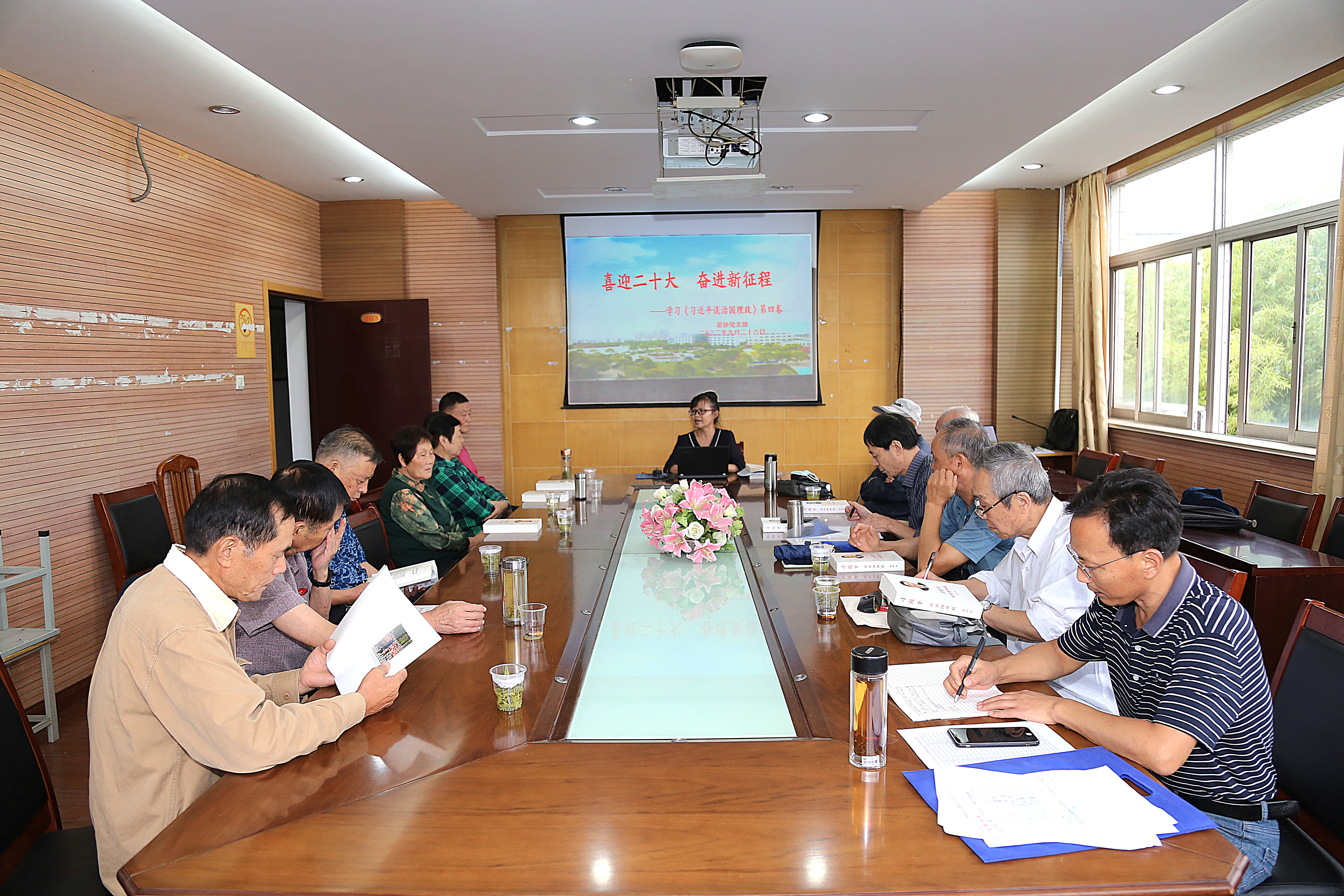 参加活动的老同志们纷纷感谢学校党总支给予离退休老同志的爱护支持,感谢学校工会为老同志付出的辛苦努力。表示在学校党总支的关心支持下,一定会继续发挥余热、为学校的发展添砖加瓦。随后,学校党总支组织老同志们开展了“我为金坛教育发展献一计”金点子征集活动,老教师们纷纷建言献策。贡俊萍老师还带领各位老同志一起学习了《习近平谈治国理政》第四卷,共同“喜迎二十大,奋进新征程”。