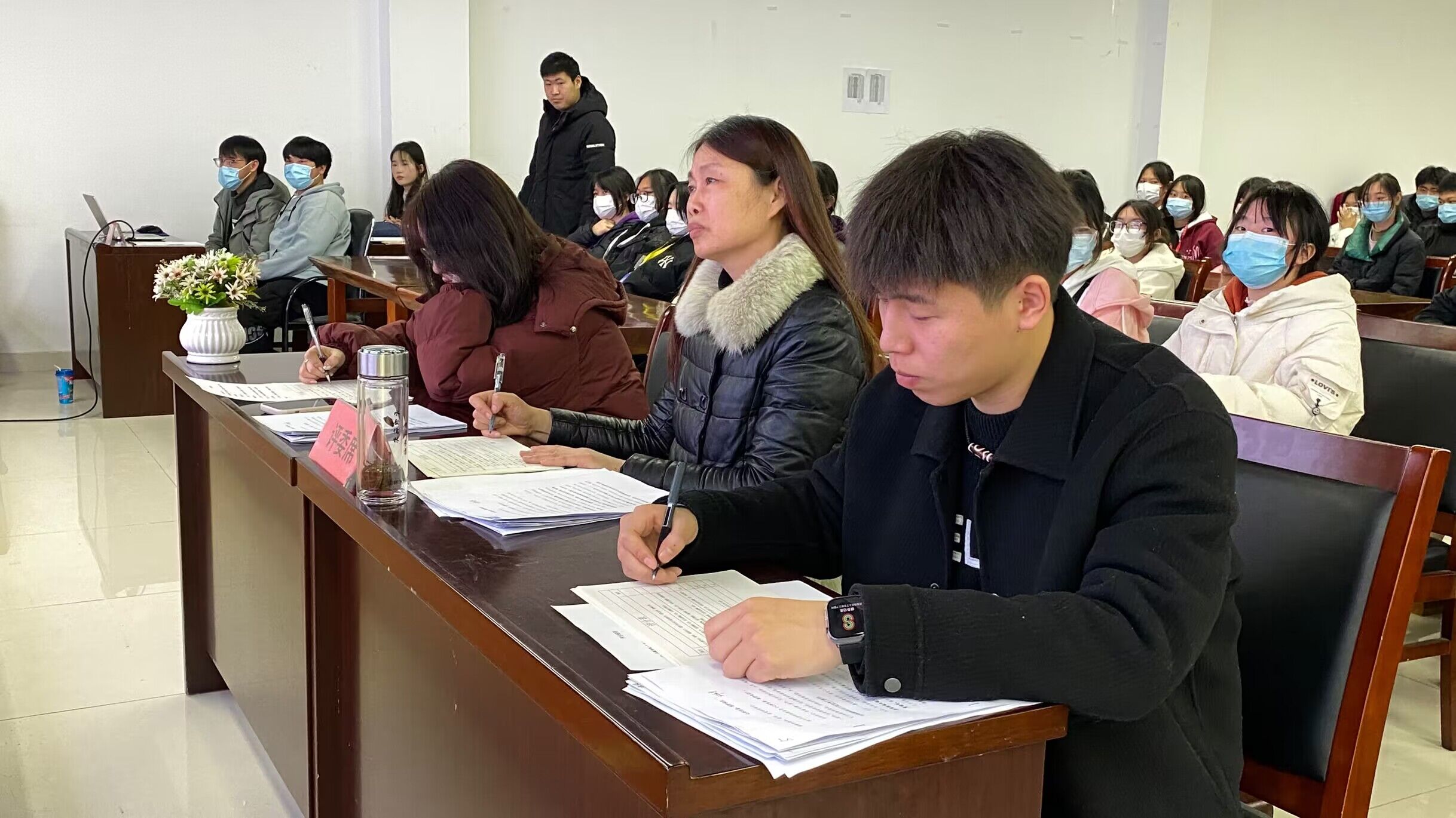 本次比赛共20名学生参加,参赛选手以抓阄的形式决定比赛顺序。入座后,选手们仍争分夺秒地背诵、钻研演讲稿,以求呈现最好的演讲效果,打动评委和听众,取得好的名次,并感召众人。