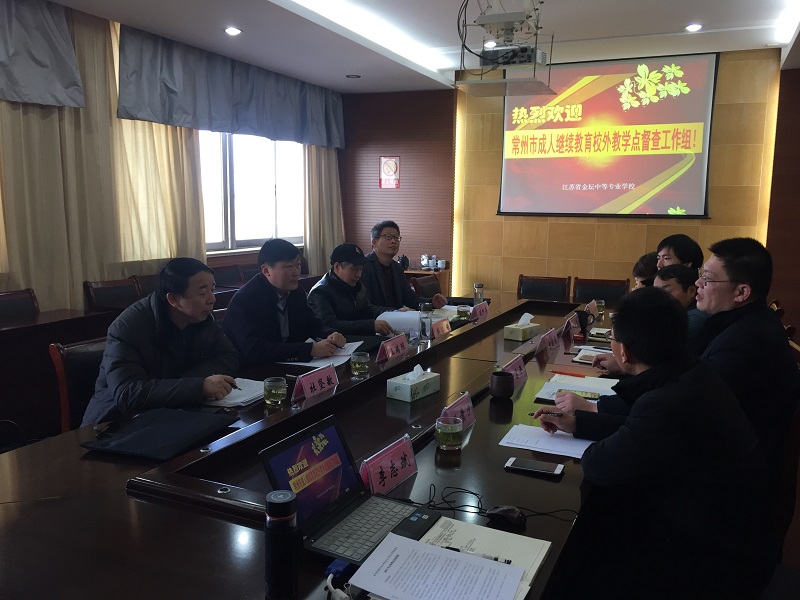 2月27日上午,由常州市教育局高职处王瑞琛主任、常州大学继续教育学院院长荆谷平、常州工学院继续教育学院副院长周中军、常州信息职业技术学院继续教育学院院长杜坚敏一行四人组成的常州市高校学历继续教育校外教学点督查工作组莅临我校,对常州机电职业技术学院金坛中专函授站的工作进行督查。