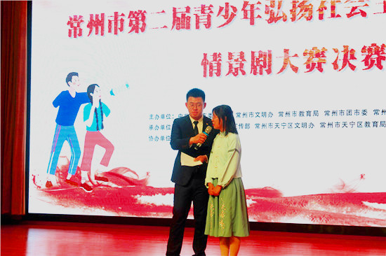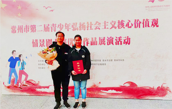 11月11日,常州市第二届青少年弘扬社会主义核心价值观情景剧大赛举行隆重颁奖仪式,我校代表队经过层层选拨与激烈角逐,荣获团队二等奖的优异成绩。指导老师于浩与蒲公英话剧社社长徐子珈代表学校参加颁奖。