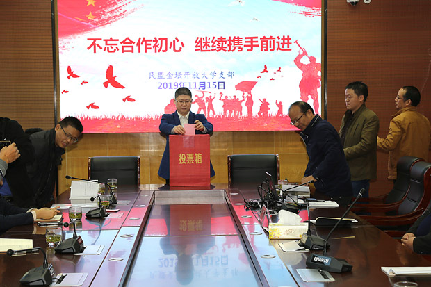 11月15日下午,民盟金坛开放大学支部全体盟员在学校行政楼三楼会议室举行“不忘合作初心 继续携手前进”主题教育活动,活动期间对支部的领导班子调整进行了表决,李志斌同志当选为新一任民盟金坛开放大学支部主委,民盟区委欧卉、金人宪,天行网页版登录入口党总支副书记汤英俊等参加活动,活动由王春新同志主持。