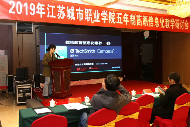 来自文华在线教育江苏分公司两位企业专家陈功、陆晴晴与参会教师分享了 微课录制剪辑软件Camtasia studio和声音处理工具Goldwave 的使用。
