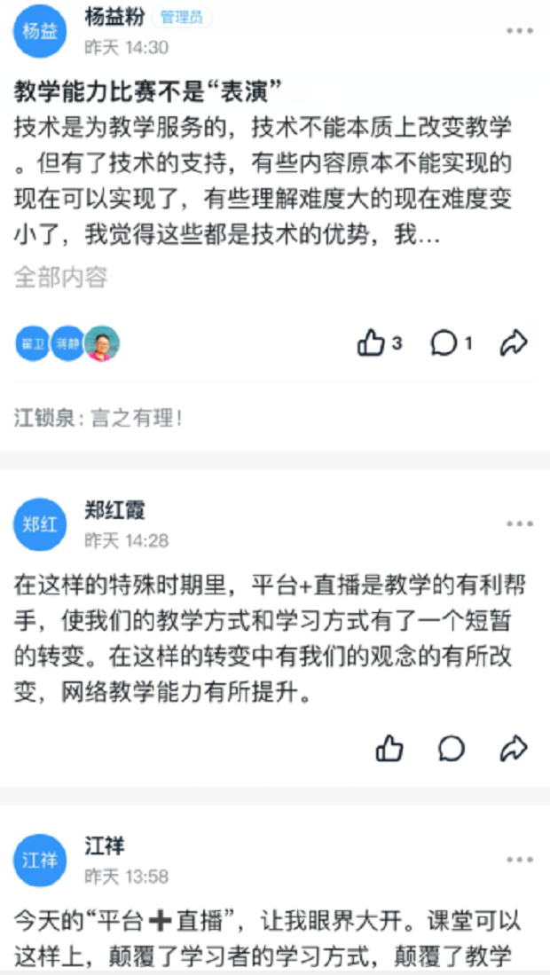 三个小时的直播异彩纷呈,这场信息技术能力提升的培训会,让老师们看到了倪教授对信息技术的熟练应用,老师们更感受到倪教授对教学的激情。整场培训会干货满满,听众们纷纷点赞。