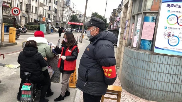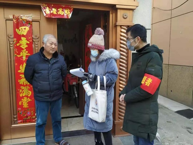 党员黄火俊、张兴,预备党员周晨,面对疫情,甘当志愿者,勇做逆行人,与社区防疫人员共同筑起爱心防护墙。