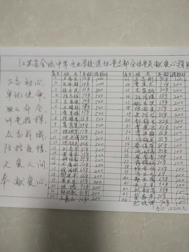 善款抗疫爱国心 众志成城显担当 ——省金坛中专党员、教师、盟员踊跃捐款抗击疫情纪实