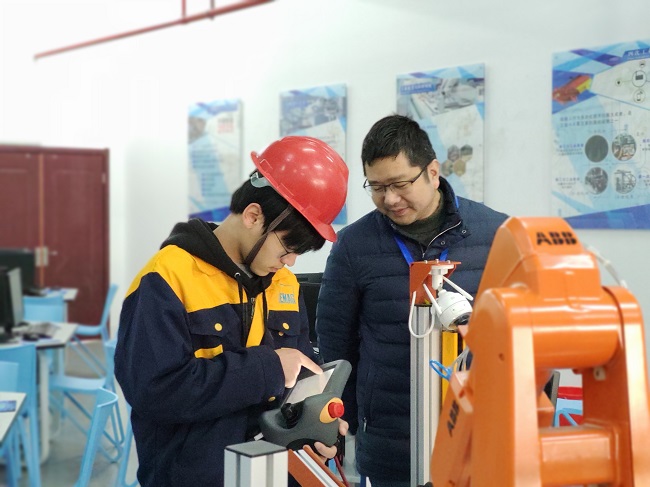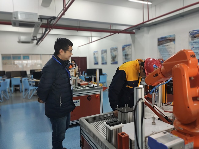 工业机器人操作与运维技能等级证书面向中等职业院校,工业机器人技术应用、机电一体化技术、电子技术应用、机电技术应用等专业。为培养学生成为系统集成企业的工业机器人安装、调试等岗位的从业人员;应用企业的操作、维护等岗位的从业人员。我校坚持以学生为中心,积极落实1+X证书试点制度文件精神,着力深化复合型技术技能人才培养培训模式和评价模式改革。智能制造系将以1+X证书制度试点工作为抓手,进一步深化人才培养方案改革,构建基于“书证融通”的课程体系,稳步推进1+X职业技能等级证书认证考核工作,切实做好高素质技术技能人才的培养工作。 我校是教育部“1+X”工业机器人职业技能等级证书制度试点院校,本次考试校系两级高度重视、精心组织。学校成立试点工作领导小组,制定试点工作方案,对人员职责分工、考试工作流程、考试过程监管、考试系统安装、考试环境营造等方面做了细致部署。校长卞勇平、校企合作处处长陈云东亲临考试现场巡视和指导,卞校长对开考各项工作的有序开展表示肯定,要求系部要以“1+X”证书制度为契机,加强校企共建,大力推行“1+X”证书以提高人才培养质量。(撰稿:智能制造系)