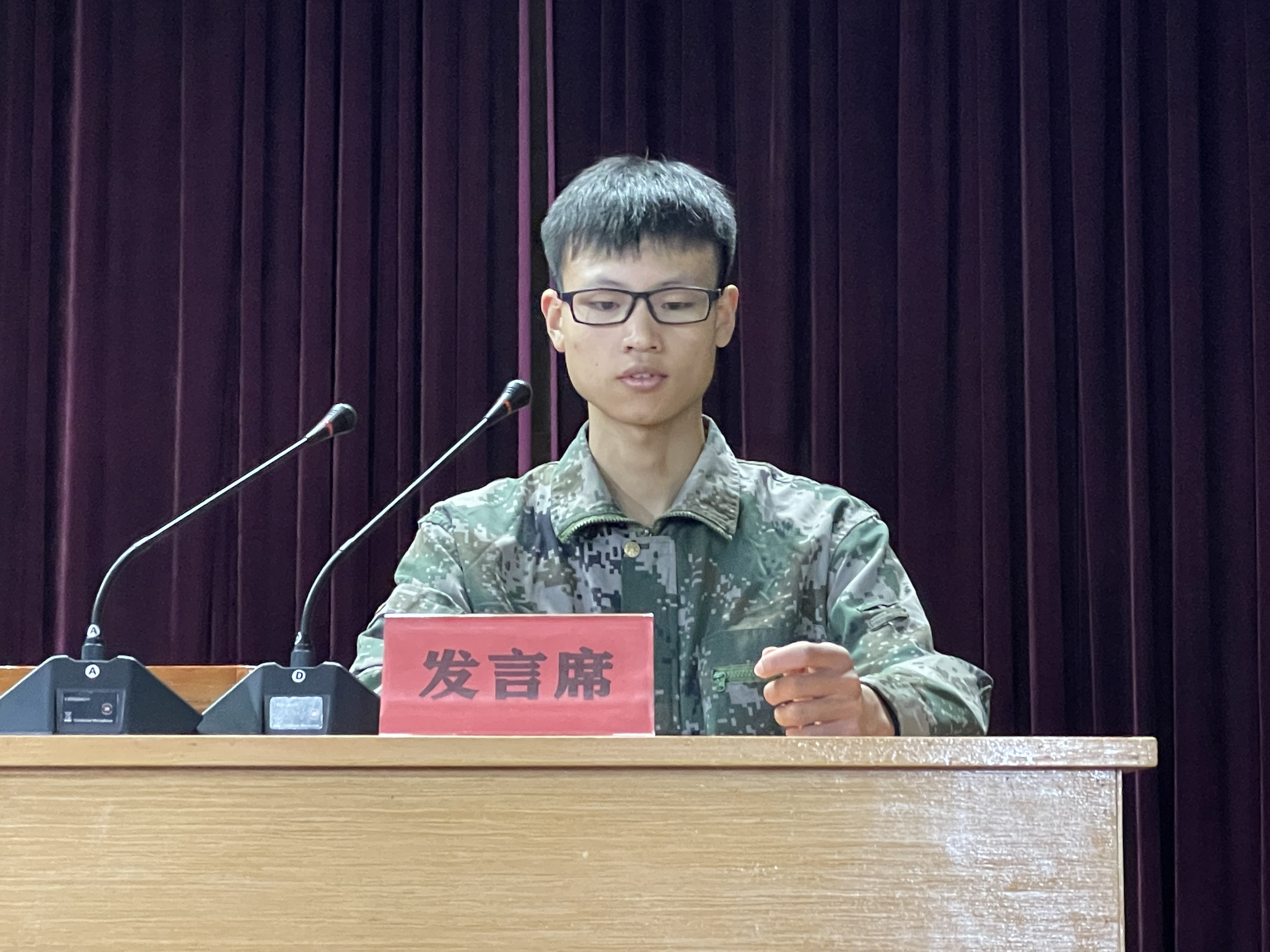 212201(21机电一体化技术中德国际合作班)班朱子华同学代表军训学员发言表示将认真服从教官指令,以高昂的斗志和顽强的毅力完成军训,以军人的姿态、军人的情怀去践行“请党放心、强国有我”的青春誓言,不辜负学校和家长的期望;张璋老师代表教师发言,感谢基地领导对学校军训工作的大力支持,同时也对同学们提出了殷切期望。