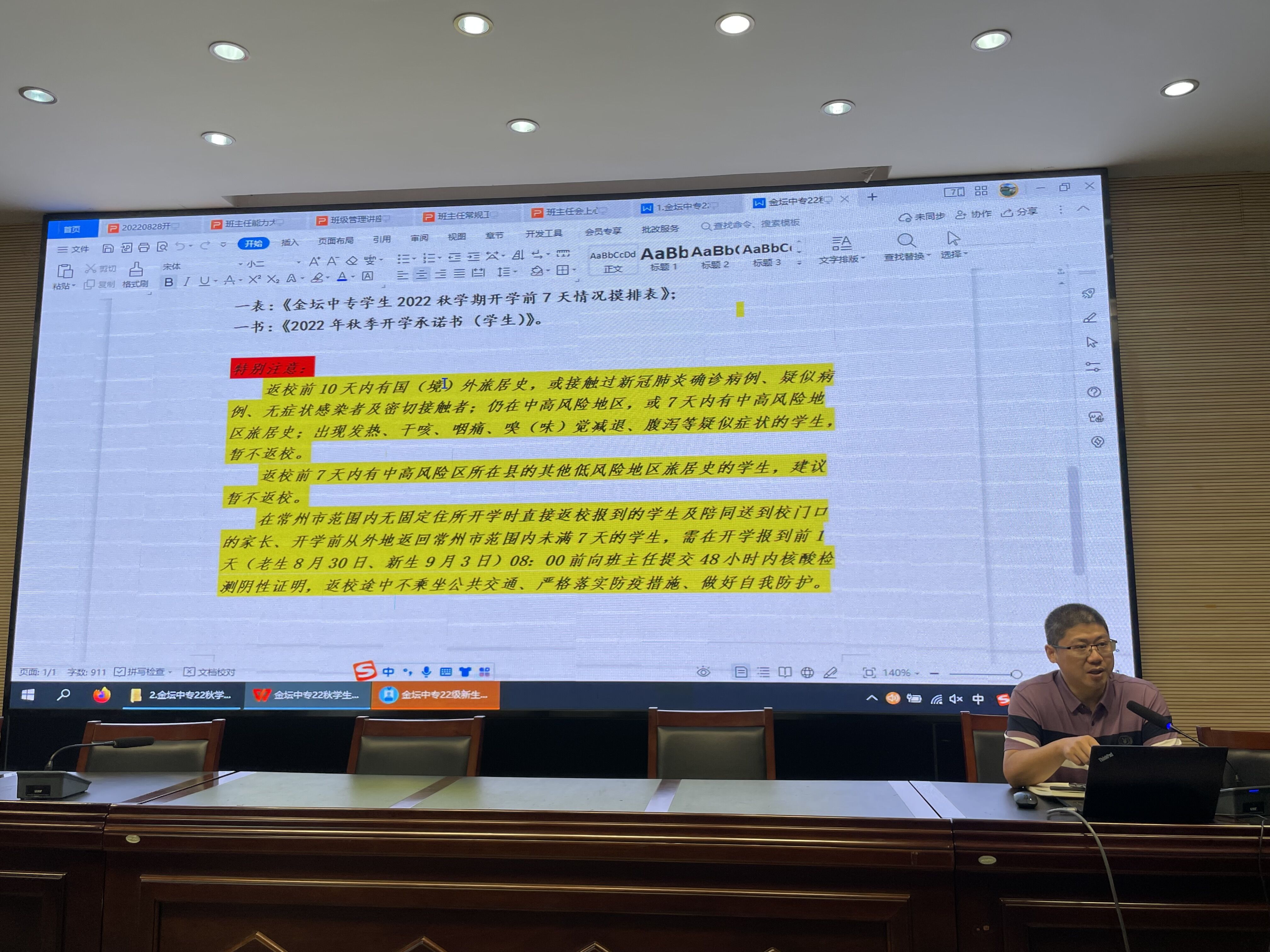 为打造一支“能力强、业务精、懂管理”的高素质班主任队伍,提高班主任的理论水平及实践能力,明确新学期班级管理方向,理清工作重点,让各项工作更有针对性,提高实效性,8月28日,我校召开了2022年秋学期班主任暑期培训暨开学工作会议,会议由学生工作处(保卫处)处长主持,潘凌燕书记、汤英俊副校长、学生工作处(保卫处)、各系部管理人员、全体班主任参加。