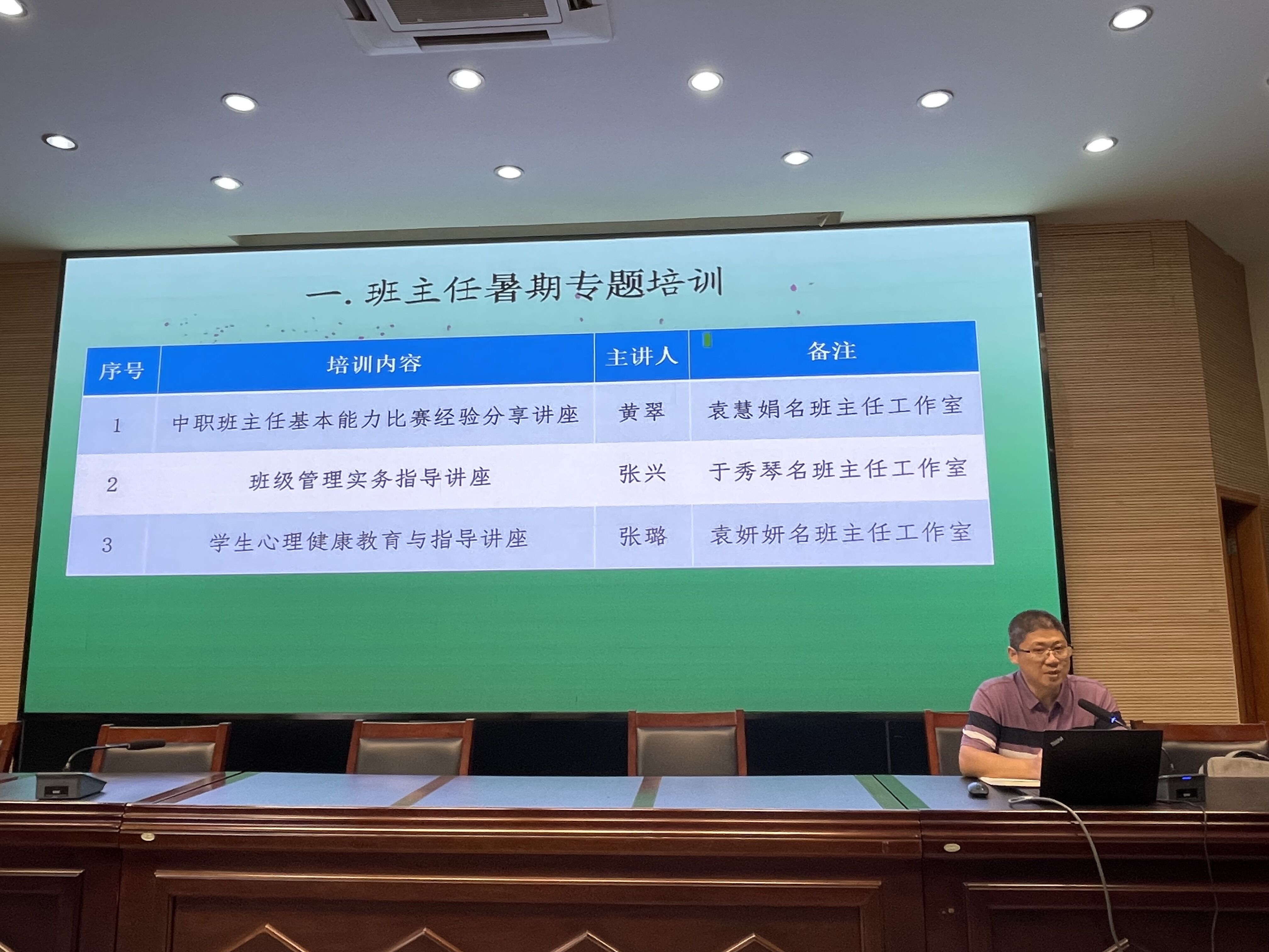 在第一阶段的班主任暑期培训中,袁慧娟区级名班主任工作室骨干成员黄翠老师分享了她多次参加中职班主任基本能力比赛的经验,进一步明确了班主任专业化发展的目标和路径;于秀琴校级名班主任工作室骨干成员张兴老师作了主题为《教育,是静待花开的守望》的班级管理实务交流,通过一个个真实鲜活的案例展现出班级管理智慧,使大家在思维碰撞中获得了更有效的经验策略,从而对班级管理有了新的认识和思考;袁妍妍校级名班主任工作室骨干成员、学校心理健康教育服务中心张璐老师则做了一场学生心理健康专题讲座,从学生心理普测、心理普测预警学生干预手册使用步骤、朋辈心理辅导等三个方面做了详细的解读。