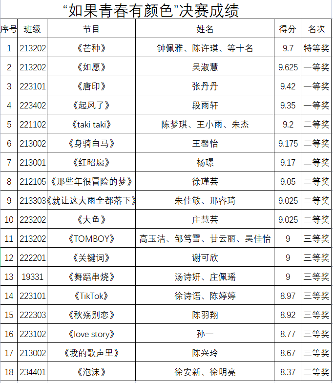 以下为本次比赛最终名次: