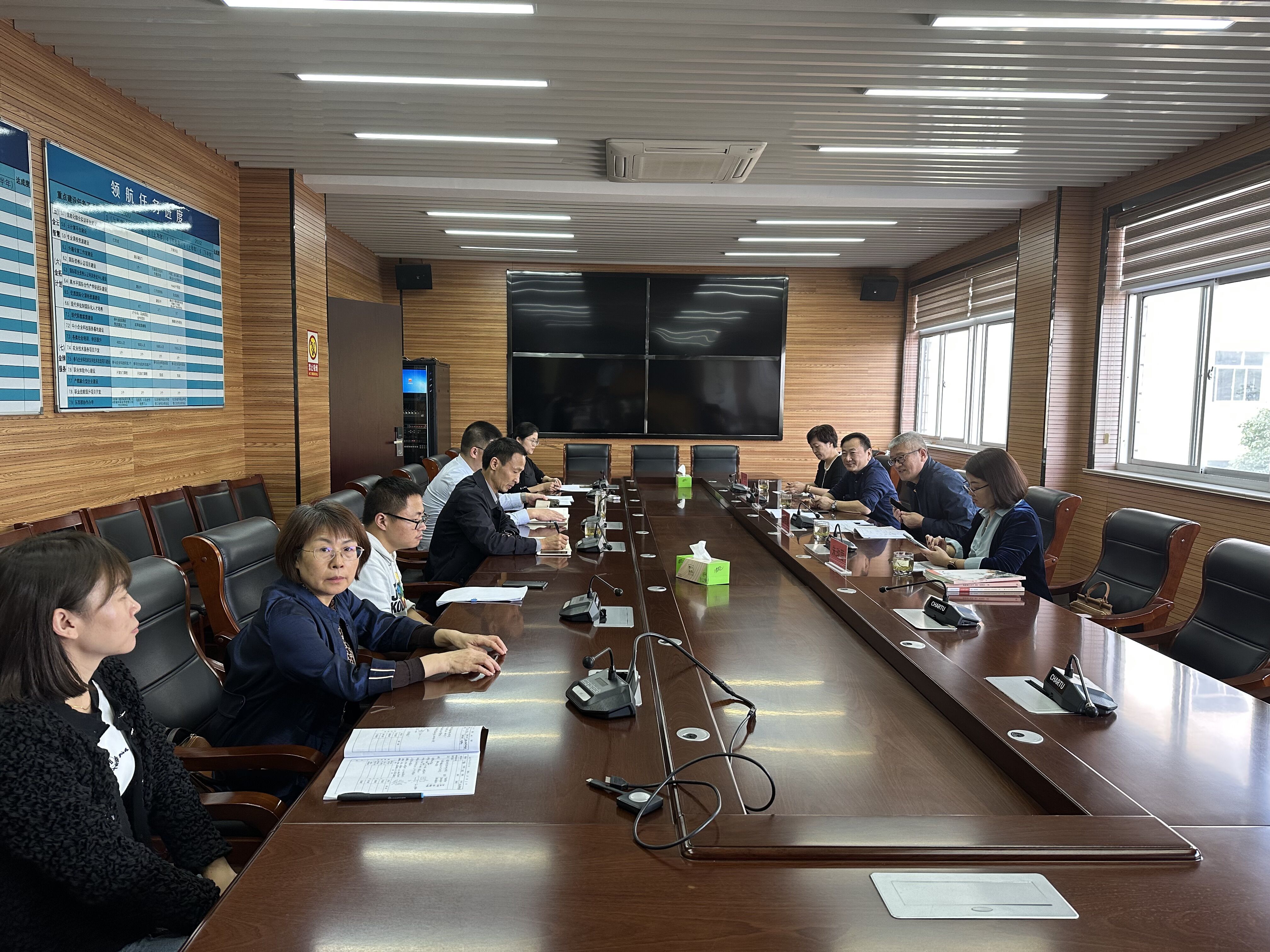 张桂春书记组织教务处、校企合作处负责同志开展座谈,了解学校教学基本文件落实、校企合作和校本教研活动开展等情况。