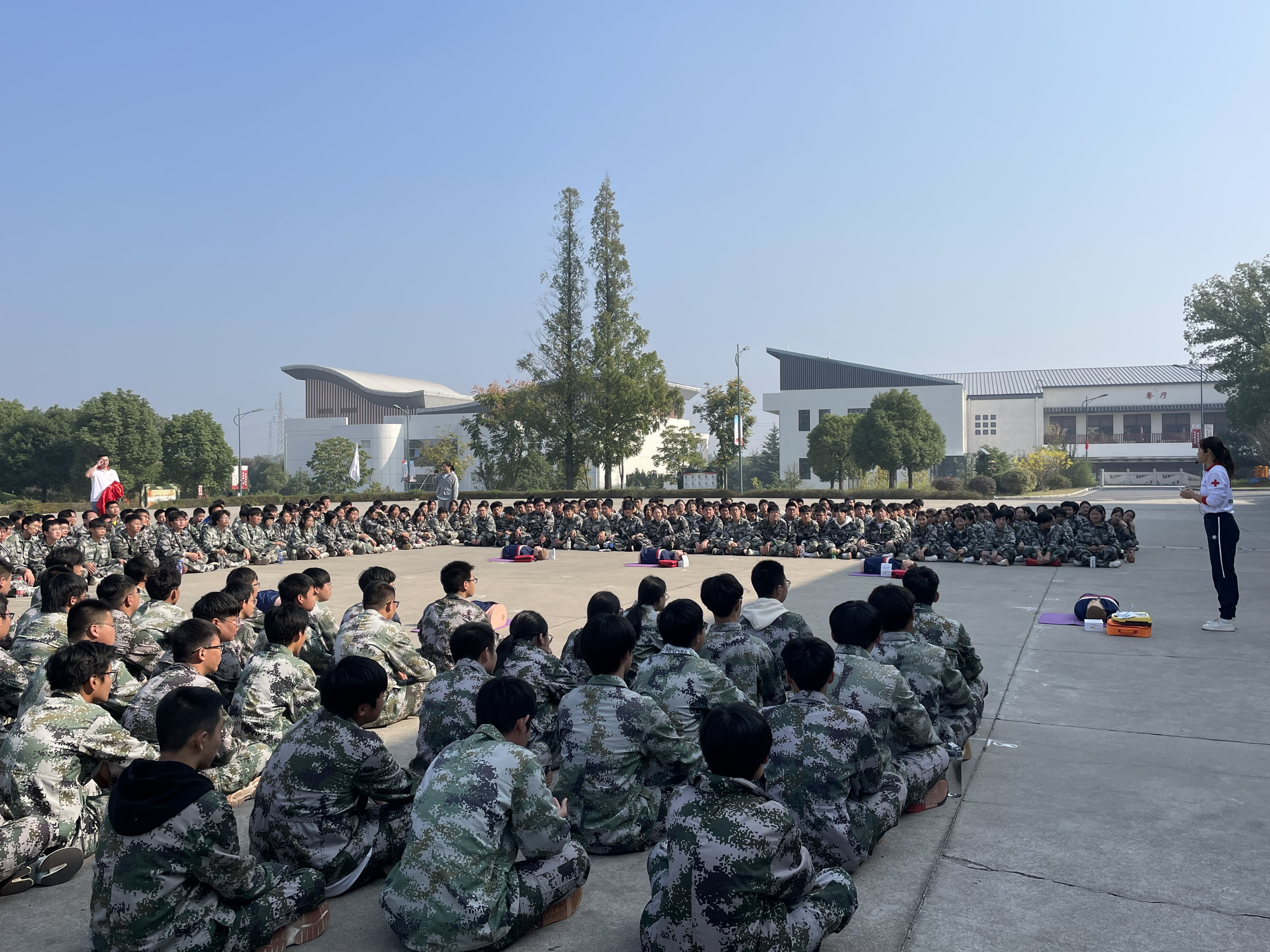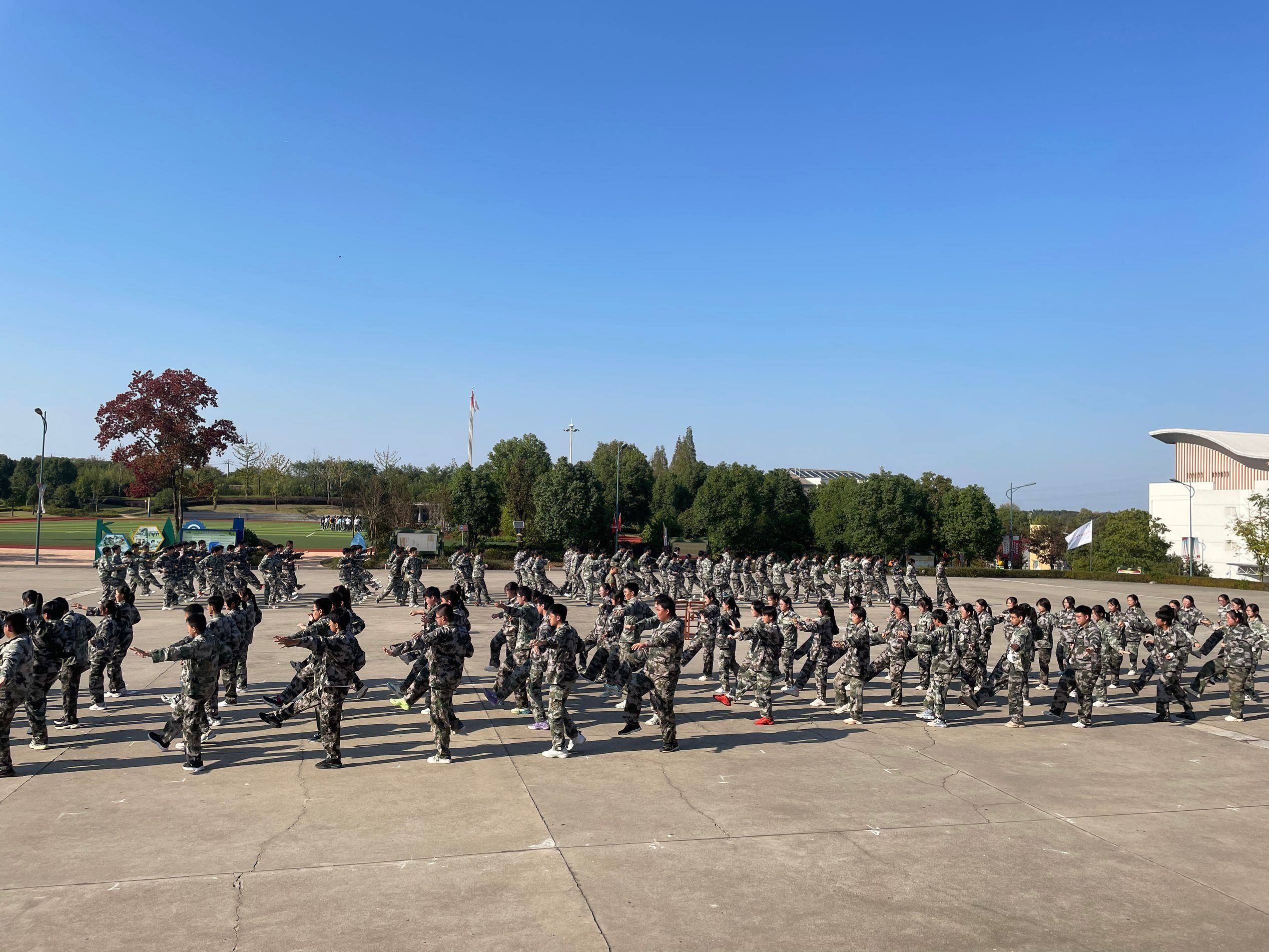 2023级新生军训正在如火如荼地进行。清晨来自本科部、文经系、汽车工程系三系(部)不同专业、不同背景的学子们,身着迷彩服,斗志昂扬地站在军训场上,迎接人生中的又一次新挑战。